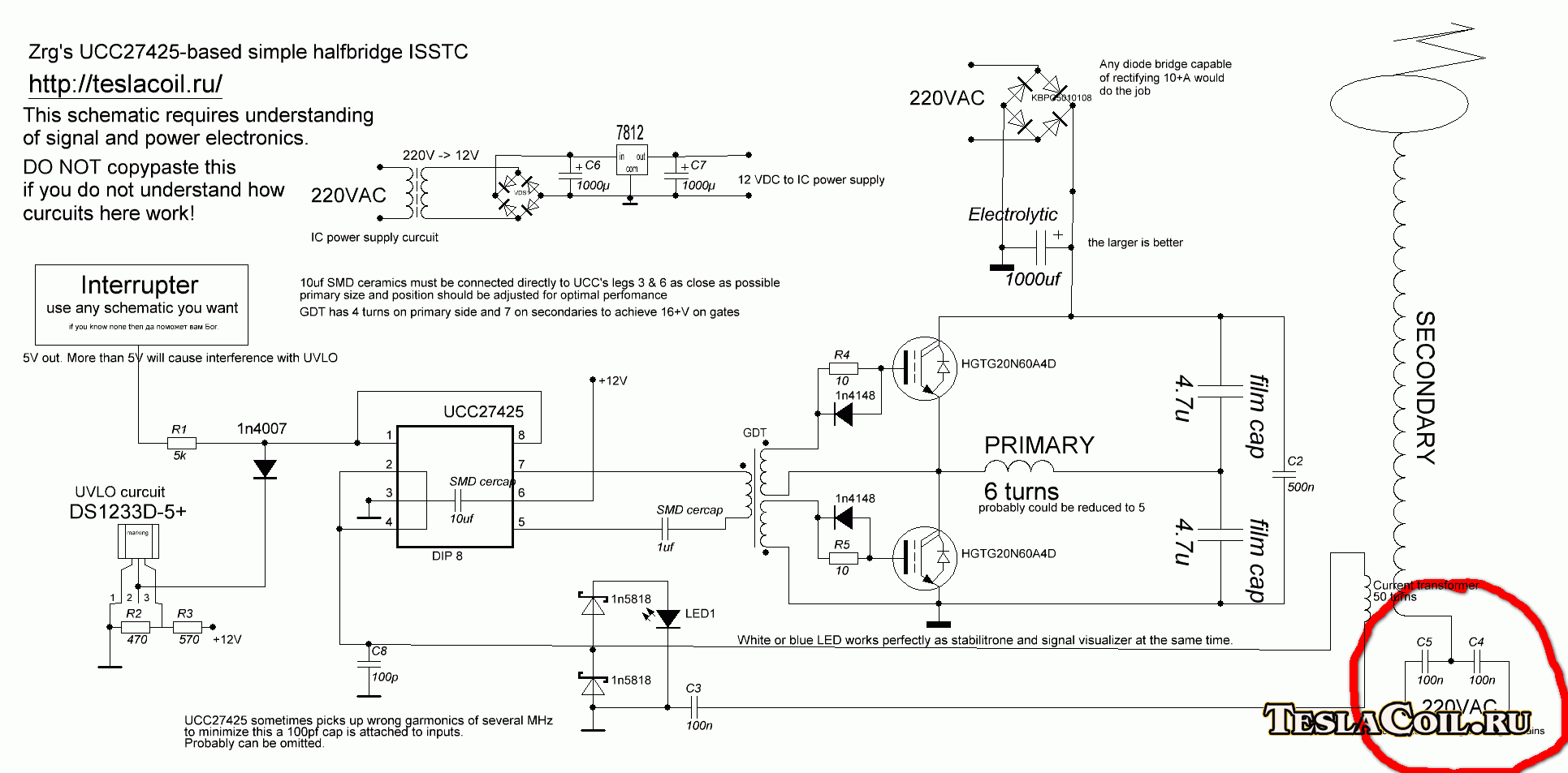А если такой вариант. Допустим я прихожу к незнакомой розетке))) Нахожу в ней фазу и ноль. Отправляю конец вторички в ноль, без конденсаторов и прочего, ну и запускаю конструкцию...