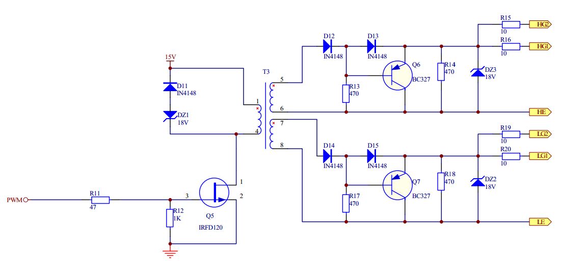 Управление IGBT при помощи импульсного трансформатора.