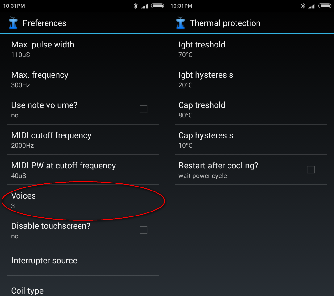Так же была добавлена менюшка конфигурации термозащиты.