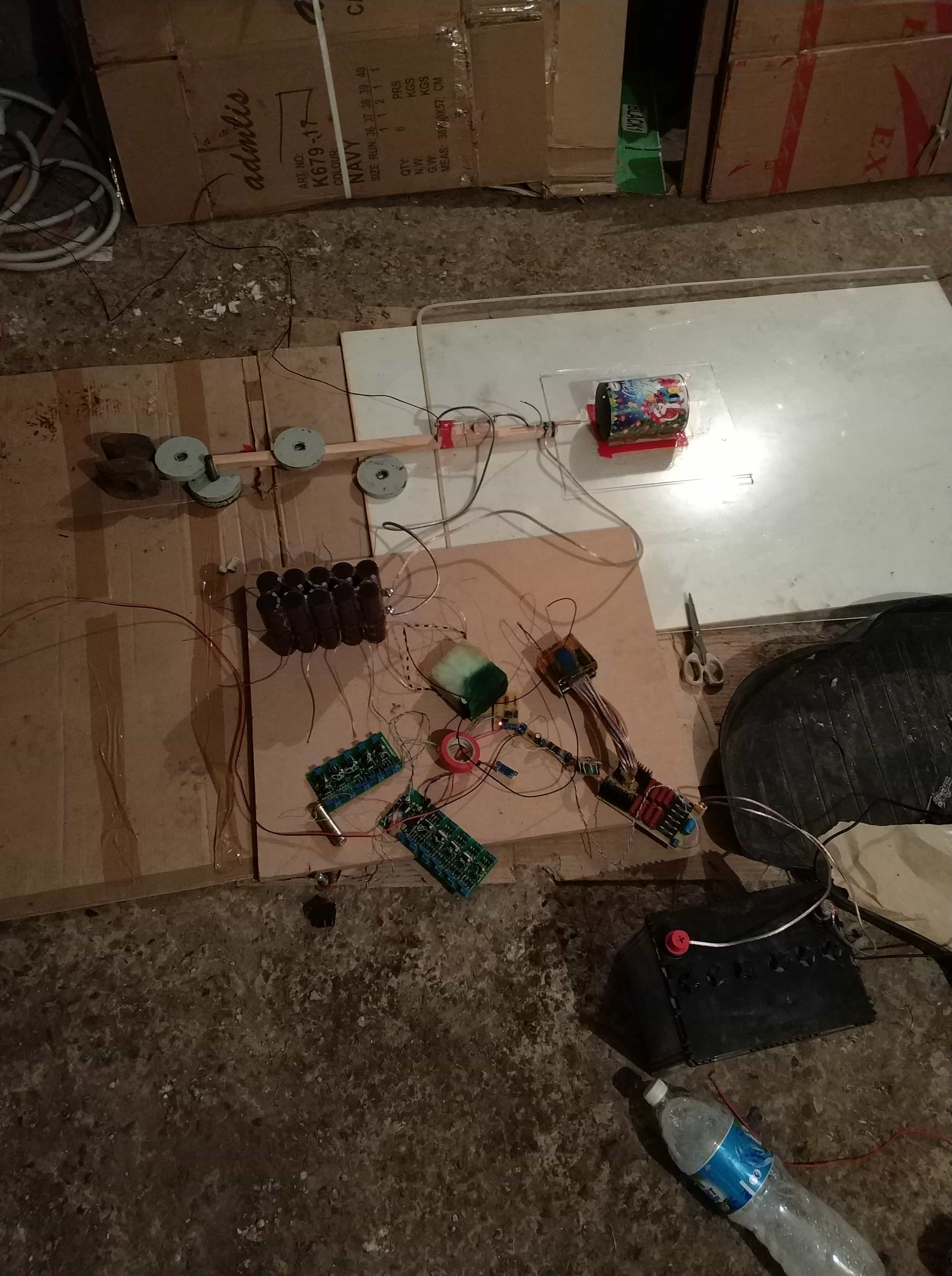 То что на видео сейчас - стрелял алюминиевой проставкой 0,04 гр - так пуля просто зашла на 4 см, и момент силы даже не превысил силу трения покоя, мишень не шелохнулась, заряжал до 1835 дж/ 4,2 кВ - внутри ствола проставка даже не испарилась... и звук намного тише.