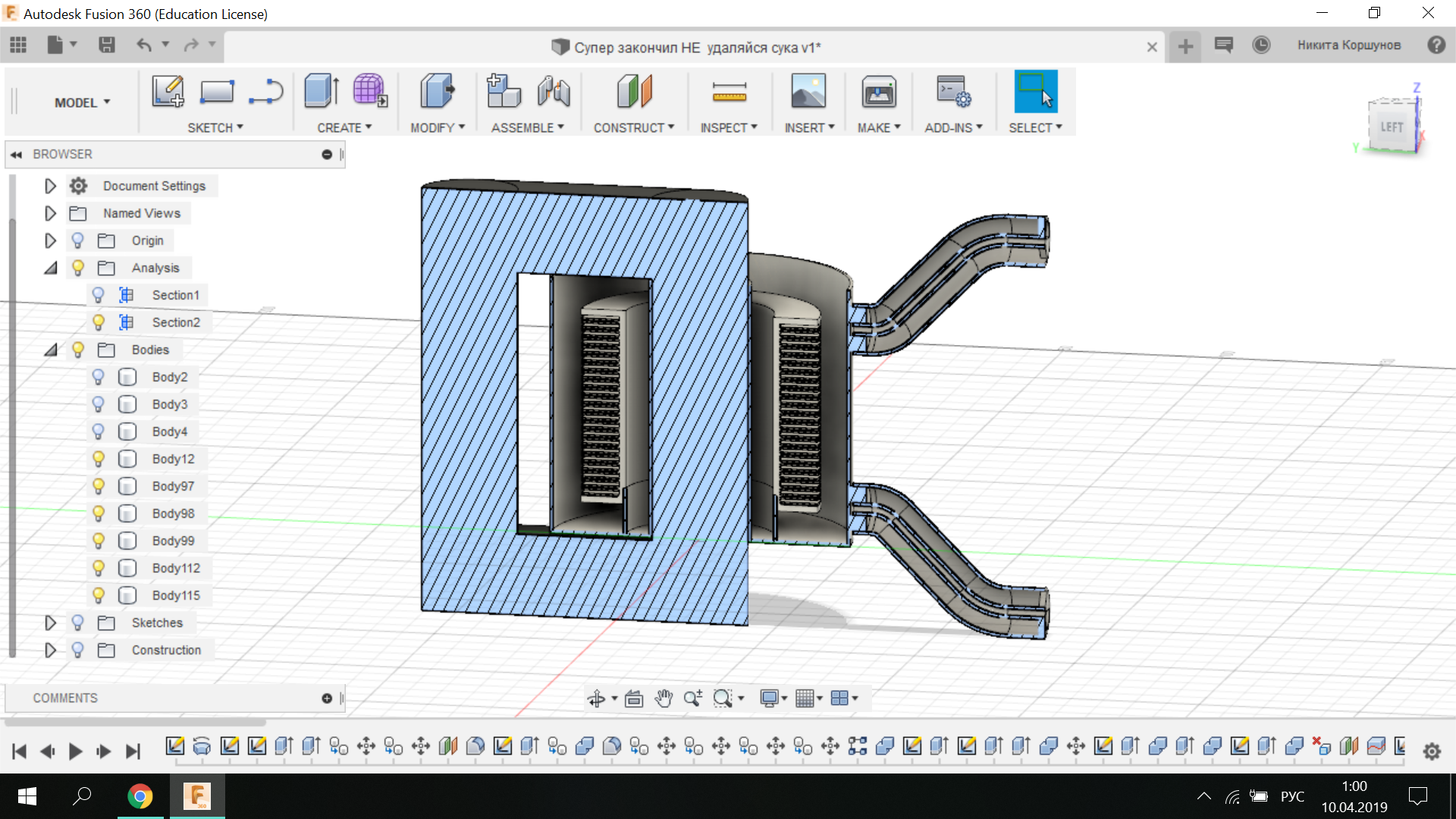Затем рисовалась модель секционника, для последующей 3d печати и заливки под вакуумом.