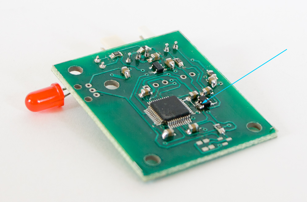 Естественно, не обошлось без ошибки - забыл про подтягивающий резистор, из-за чего при включении почти на миллисекунду выход становился "высоким". Но, повезло, что контакты между которыми нужно бросить резистор оказались рядом и я его смог просто допаять на выводы микросхемы.