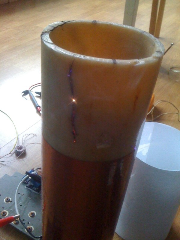 Была у меня трубка из ПВХ, на ней закреплен болт, в него я ловил разряды с тесел, множиков, стракарей, и т.д... Так вот внутри этой трубки как раз начала прорастать такая дорожка, и прямо в сторону моей руки, что естественно вылилось однажды в очень нешуточный удар со сдвоенных УН9/27, было больно.
