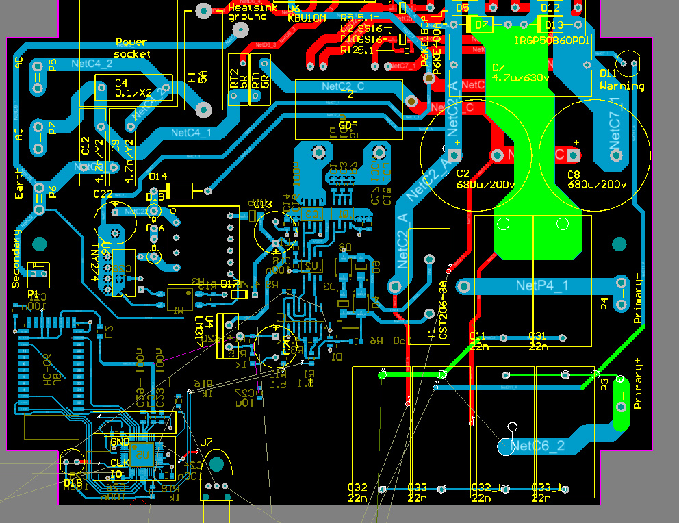 Внешний вид у платки получился не очень на этот раз. В основном, из-за того, что я пытался учитывать наводки, напряжения, и они не давали ставить детали так, как бы это было красиво.