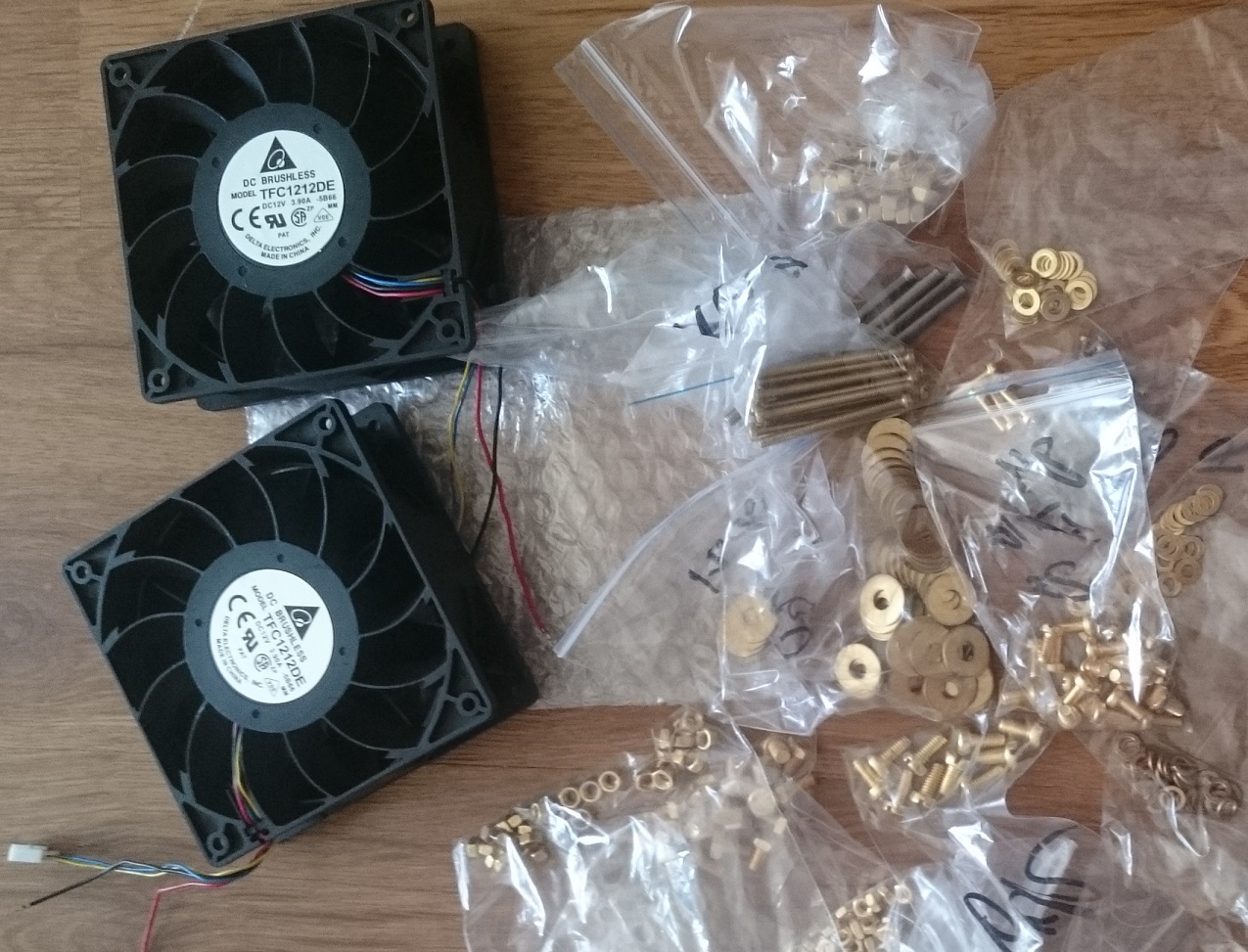 Пришли вентиляторы и немного латунного крепежа.