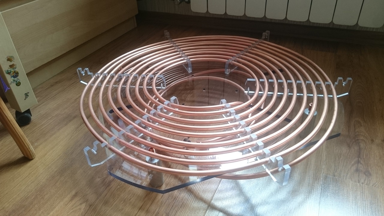 Тормознулся не надолго, но сегодня было немного времени, закрепил гребенки на основании и размотал медь, правда пока криво, но это просто, чтобы длину спирали прикинуть