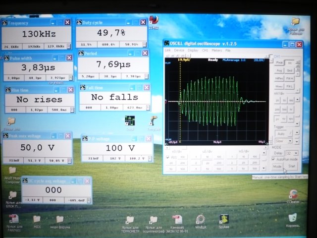 разобрался почему происходил выброс напряжения и тока-все дело в частоте ккм-100кгц,холосто, ходу,резонансе индуктора -90кгц. и полумостовой схеме.надо делать алгоритм запрещающий работать ккм на холостом ходу.когда индуктор и ккм включаются чуть-1с с задержкой все работает как надо и вышел сразу на1600вт 220вольт при частоте накачки 1500гц при 80мсек и резонансе 150кгц,на тесле +ккм viewtopic.php?f=27&t=777 все работает так как резонансная частота 230кгц .сейчас буду делать без ккм.