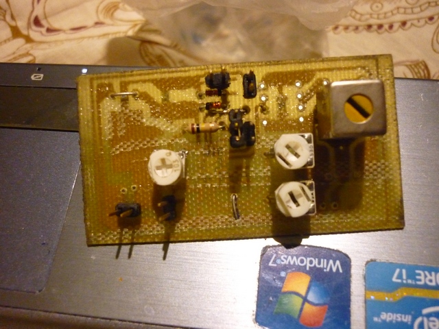 Да драйвер в ДИПе будет, к нему проще радиаторы лепить. Я пузо как обычно сотру и припаяю пластинку, ей ничего не будет мешать чтоб торчать в противоположную сторону от подстроечников.