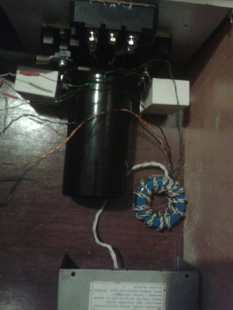 Так же в питании стоит развязывающий самопальный транс. Под нагрузкой напруга на нем проседает до 180 вольт, что опять-же отражается на длине разряда