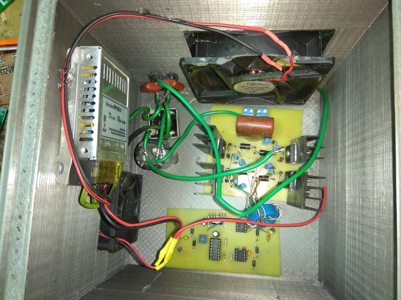 Логическая часть состоит из двух ucc'шек и триггера шмитта . Ну и конечно же из Simle Interupper'а . Питается логика от 16 вольт , через повышающий преобразователь который идет от 12 вольтового блока питания(от него кстати запитаны два кулера) , и через кренку идет 5 вольт на блютуз модуль .