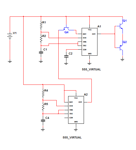 Резисторы в базах транзисторов забыл. А так, похоже на правду.