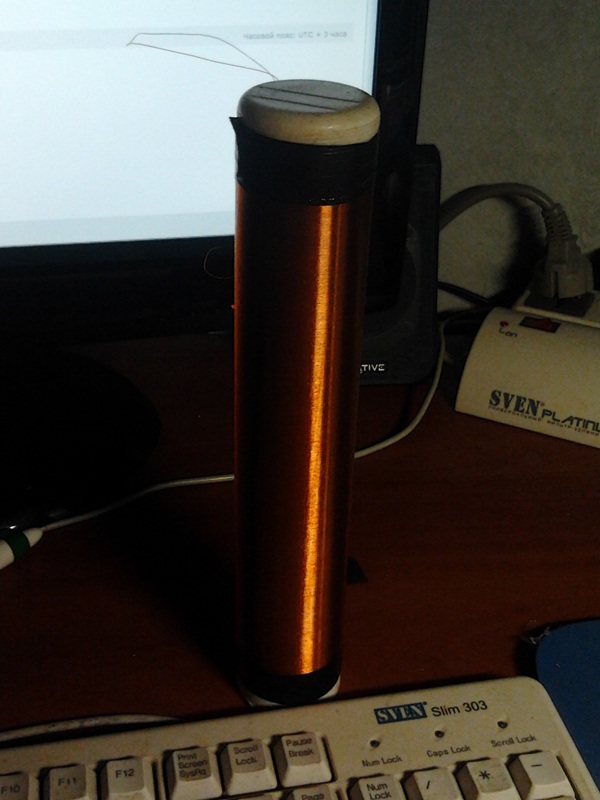 1) прикидываем габариты "на глаз", и используя программку для расчета (мне понравилась VCtesla), узнаем, что нам нужно мотать 1000 витков провода, и резонансную частоту вторички (предположим 400кГц)