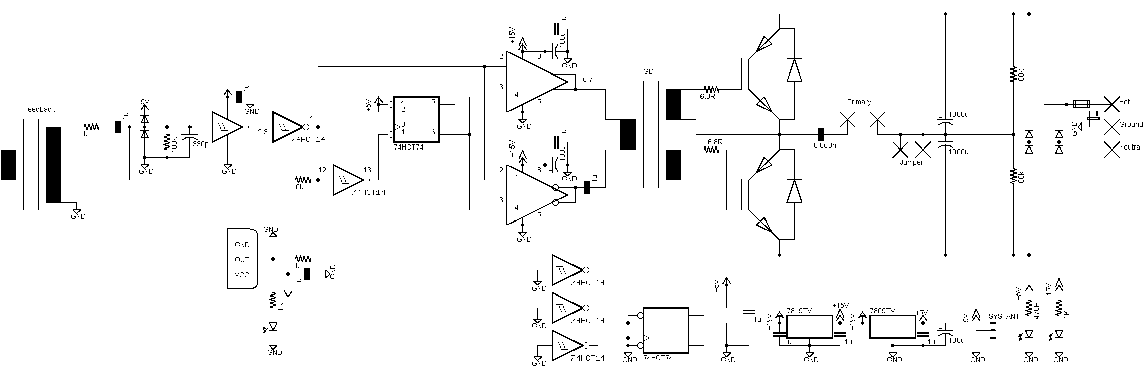 а зачем на схеме три элемента 74той к минусу подключены?нельзя ли один отсоединить для уццшки?какие примерные намоточные данные у транса ОС?что за клемы ДЖАМПЕР в сил.части?есть ссылки что-бы увидеть работу устройства?куда подключать интеруптер?что ето на схеме я обозначил нипойму некак?