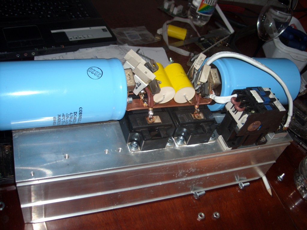 скорость заряда которых несколько больше максимального времени закрытия транзисторов. Вроде бы как так и надо. Ещё поставлю сапрессоры на каждый кристал каждого полумоста, 1.5КЕ440СА. В питании диодный мост 50А 1000V, две банки по 4700mF 450V, обвязанные конденсаторами на 0.1mF. Радиатор будет заземлён, минус DC шины будет соединён с землёй через конденсатор 0.1mF. Для управления затворами имеются промышленные оптодрайвера, которые тягали именно эти транзисторы и по которым ещё будут вопросы.