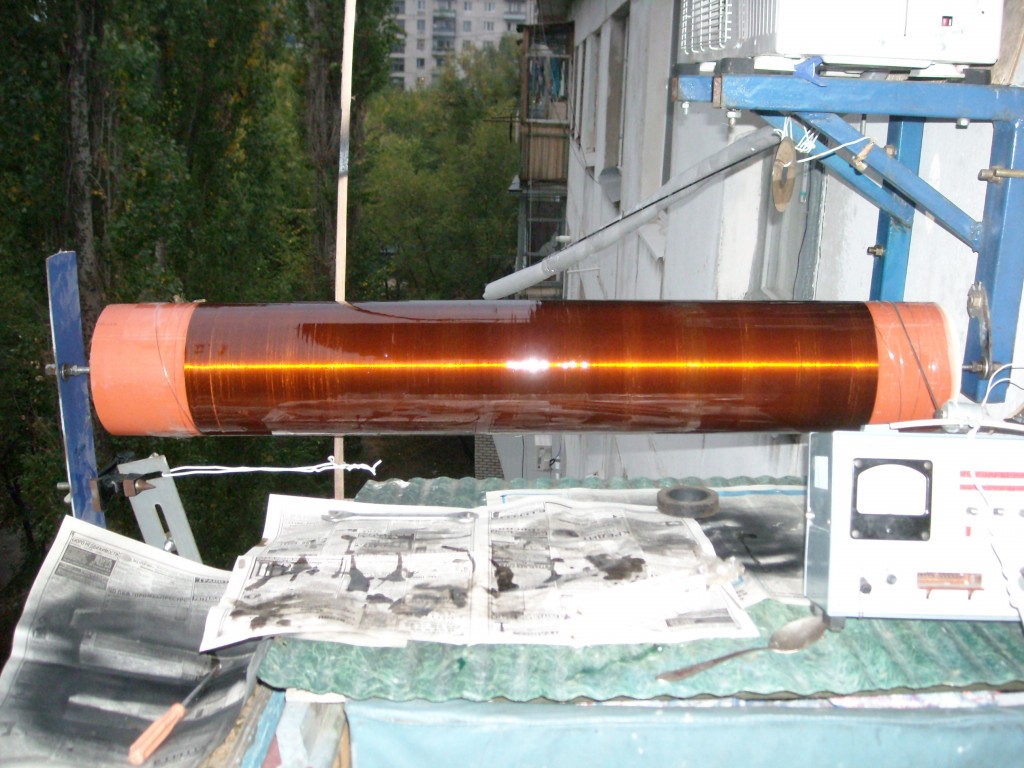 В результате пусков были получены разряды в потолок, длинной более 60 см, правда, с длинной накачки более 150 мкс и в импульсном режиме - не справляется питающий транс, не успевает заряжать кондёр фильтра.
