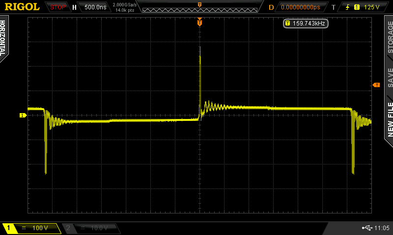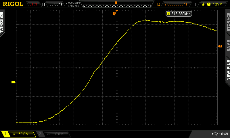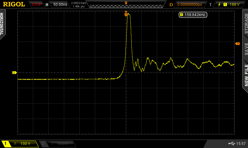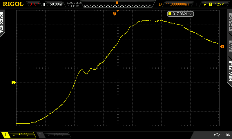 прикладываю картинки с выхода моста. прошу обратить внимание на то что в случае с карбидкремниевыми шотками напряжение питания моста 50В а в случае с обычными - 100В. т.е. если бы питание было одинаковым картина была бы скорее всего даже хуже. на выход подключены пяток витков провода в воздухе.
