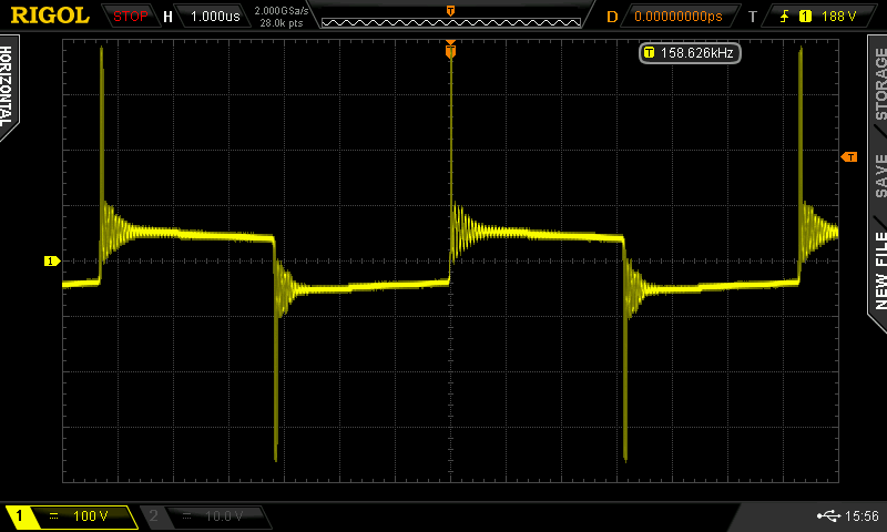 сначала битый час искал кондеры в завалах хлама на работе. нашел 5600пФ 630В. поставил их параллельно антипараллельным шотткам. выбросы сожрало но колебательный процесс растянулся до жопы. ясен пень нужны резисторы.