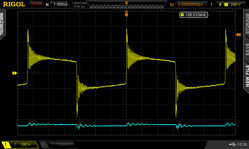 а еще я думаю как бы сделать делитель для осцилографа. ибо выбросы уже под 400В получаются. больше уже не влезают в экран и спалят осцил нафиг. но тупо из двух резисторов делитель мне кажется будет жутко врать и покажет неизвестно что. да еще и наловит кучу помех...