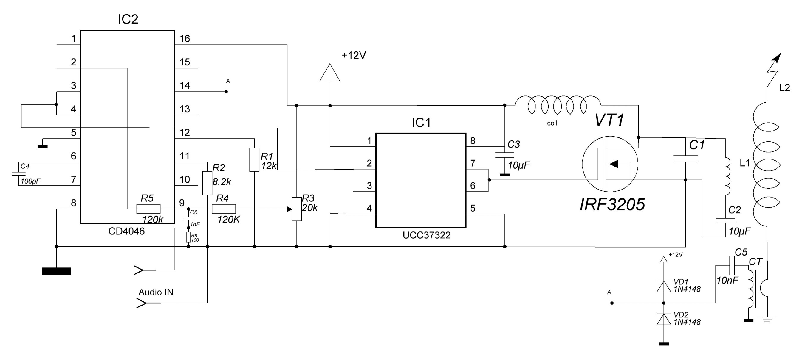 Захотел я себе небольшую теселку, играющую музыку.Долго не думая взял достаточно извесную схему http://uzzors2k.4hv.org/index.php?page=classecoil1 .Дабы не называть это плохими словами, скажем так - я сохранил полную аутентичность представленной конструкции.