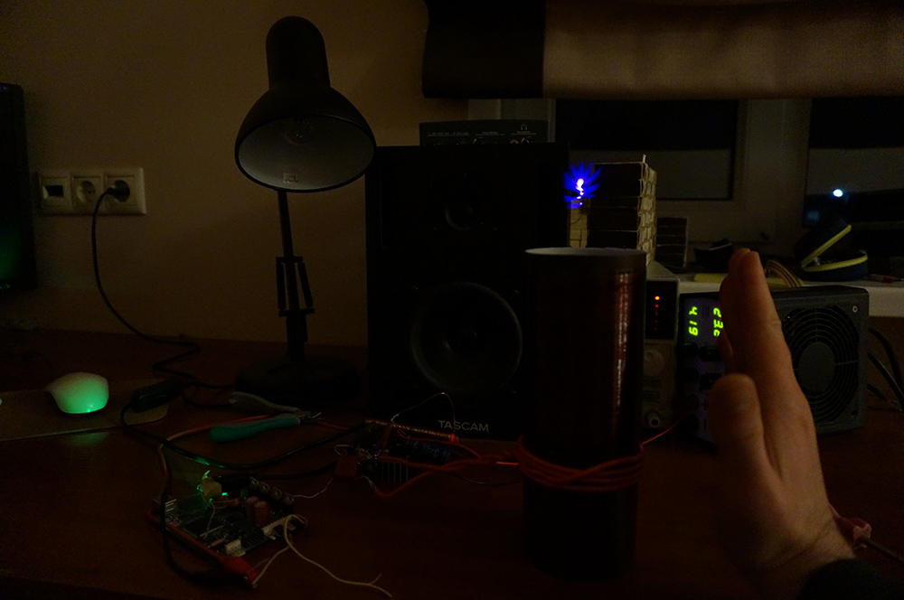 Сделал катушку на 2МГц. Чесно-говоря, я разочарован. Шипит она так-же, как и на 500кГц, а усититель E-класса модулируется сигнма-дельта модулятором отвратно. Это и понятно - ему нужно много циклов, чтобы получился стационарный E-классный режим. Поэтому, нельзя так просто брать и выбрасывать импульсы накачки. Похоже, нормально модулировать его можно только аналоговым образом, как это и делают другие ребята, которые работали над аудиотеслами.