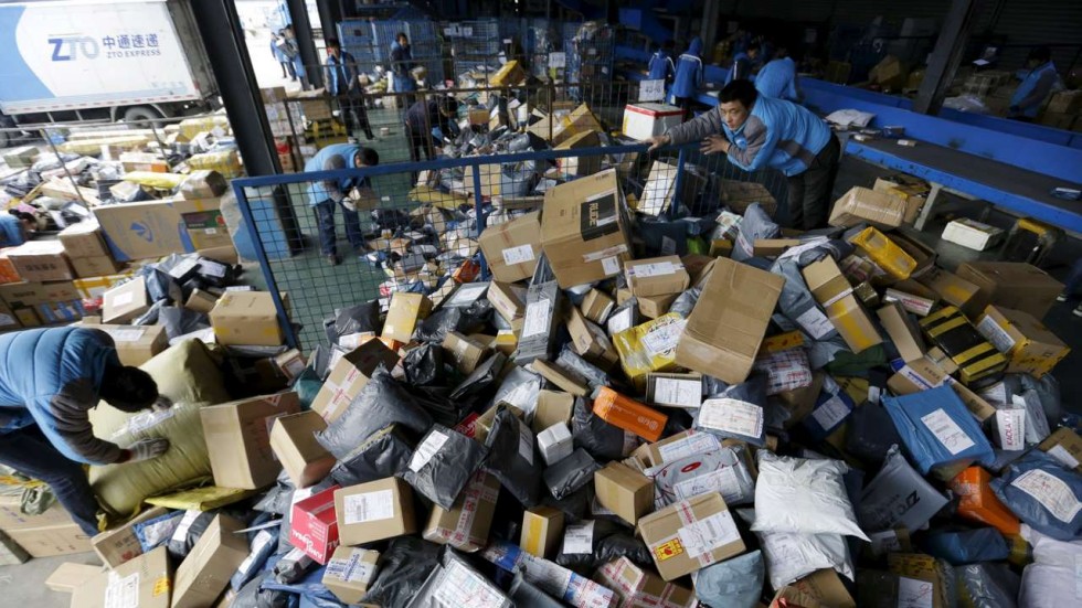 Например так выглядит типичный сортировочный центр в Китае, все делается ручками: