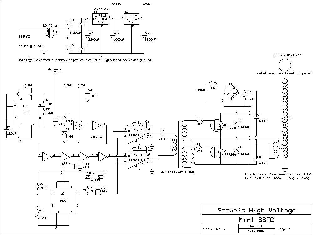 Приведённая схема - устаревший вариант , есть более новый и простой http://stevehv.4hv.org/SSTC5/miniSSTCfnlsch.JPG. Силовую часть можно переделать под 220в на тех же irfp460 например.