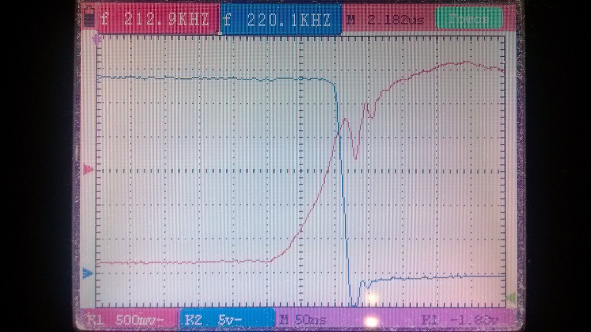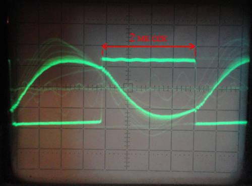 Это который верхний? Не очень понятно как ты смотришь сигнал амплитудой 12В на фоне 200-вольтовых импульсов :shock: