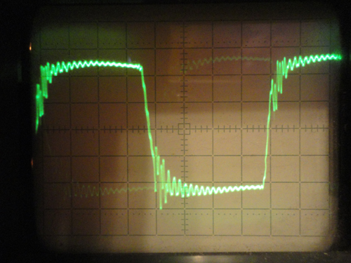 Tony писал(а): И если мерить щупом 1:10 сигнал на затворе относительно минуса то получается практически идеальный прямоугольник, и кстати если осцил подключить в качестве нагрузки то сигналы тоже хорошие, то есть лишнего запирания или открывания ключей не происходит. Проверял пока всё на холостом ходу , ибо нагрузка как я понимаю несколько сглаживает выбросы поэтому тестировать лучше в жёстком режиме. .