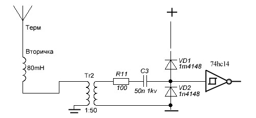 Диоды перед диодной вилкой обрезали повышенное напряжение, а вилка защищала от отрицательного напряжения на ножке микросхемы.