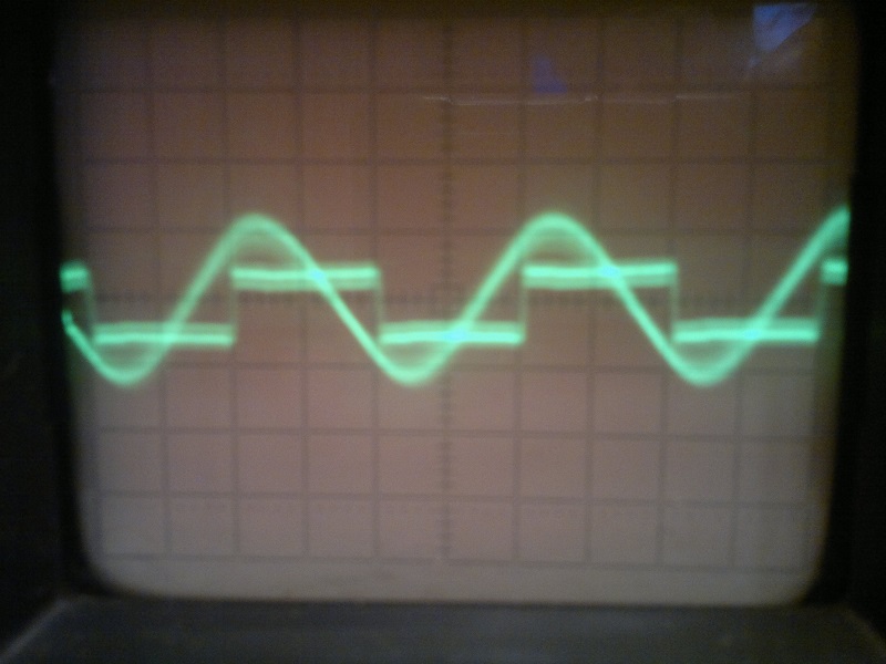 синус - это ток с первички полученный через токовый транс, а п-образый сигнал это напряжение на первичке.