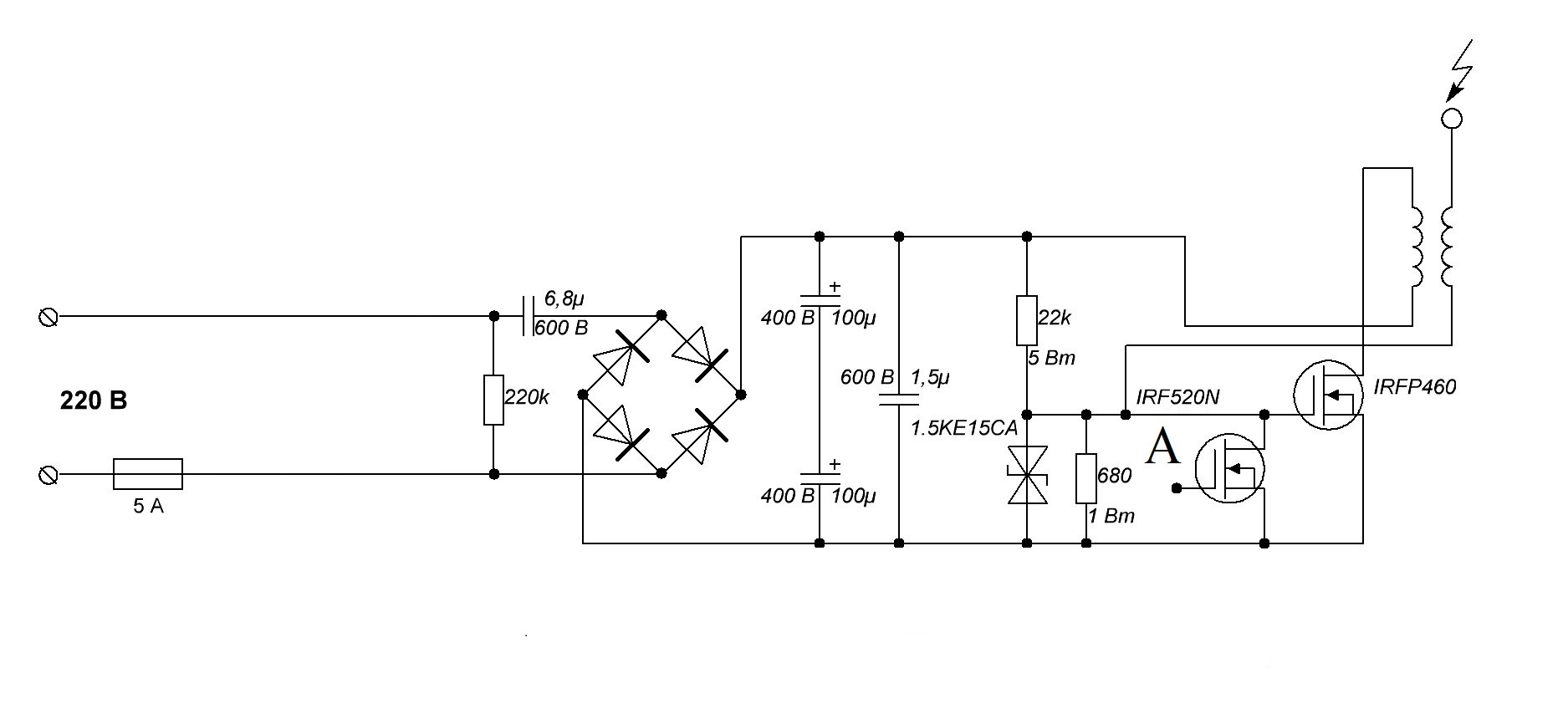 Собрал по схеме, что скинул выше. Вообще ничего не произошло..... ирфп460 жив, ничего не произошло