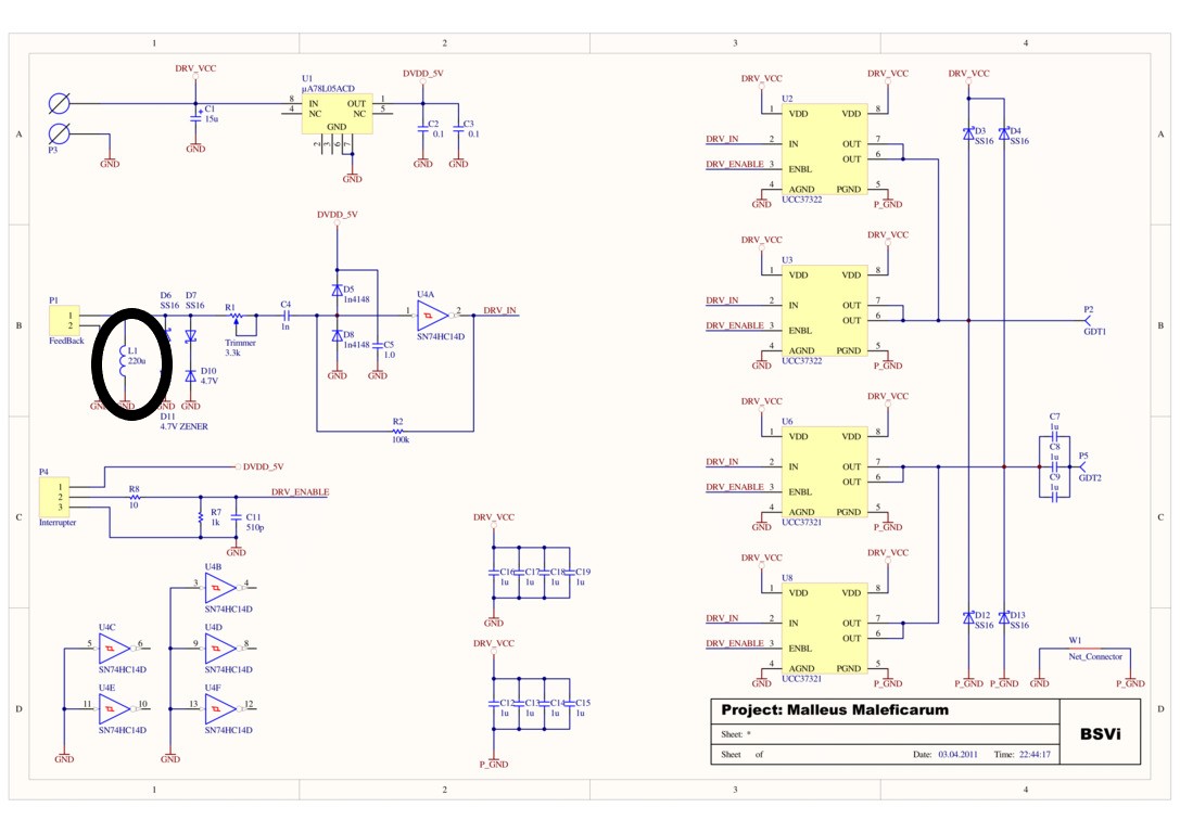 Всем привет, надеюсь вопрос решится в компактных масштабах. Ситуация следующая: Есть рабочая SSTC, полумост на базе двух FGH40N60SMD, управление через гдт, в драйвере 2 ucc37321/2, управляется синхропрерывателем по оптоволокну. Резонансная частота около 250 кГц, обратная связь через тт, в данном случае talema 100 (50 витков), ну в общем практически стандартная схема. Тестировал SSTC дома, всё было хорошо, при высоте вторички 20 см стример достигал порядка 30-40см, при этом скважность не превышала 30%, перебоев в работе не наблюдалось. Решил протестировать установку в другом месте, тут начались проблемы, одна из которых - трансформатор сам начал периодически входить в CW режим, не смотря на то что накачка была ну от силы 100 мксек, мощность соответственно резко возрастала и срабатывал предохран на 5 А на входе. Причём единичные импульсы не вызывали подобного, оно восновном проявлялось при проигрывании музыки. Решил что раз кроме обстановки ничего не изменилось, то проблема как то связана с заземлением. Хотя по логике вещей вроде такая ситуация может быть спровоцирована влиянием магнитного поля первички на управляющую электронику, но в другом месте то всё прекрасно работало.