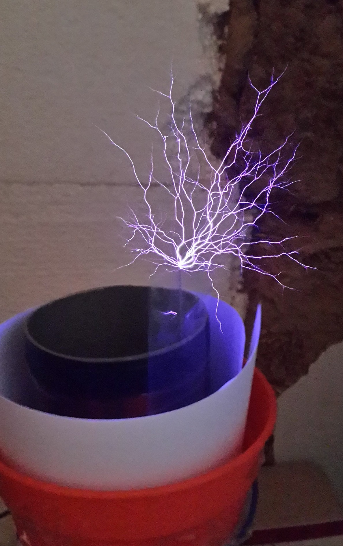 Вот эта же катушка, с тором (полумост зерга), (собрал ее еще 2014 году), как видно, стример не распушевается.