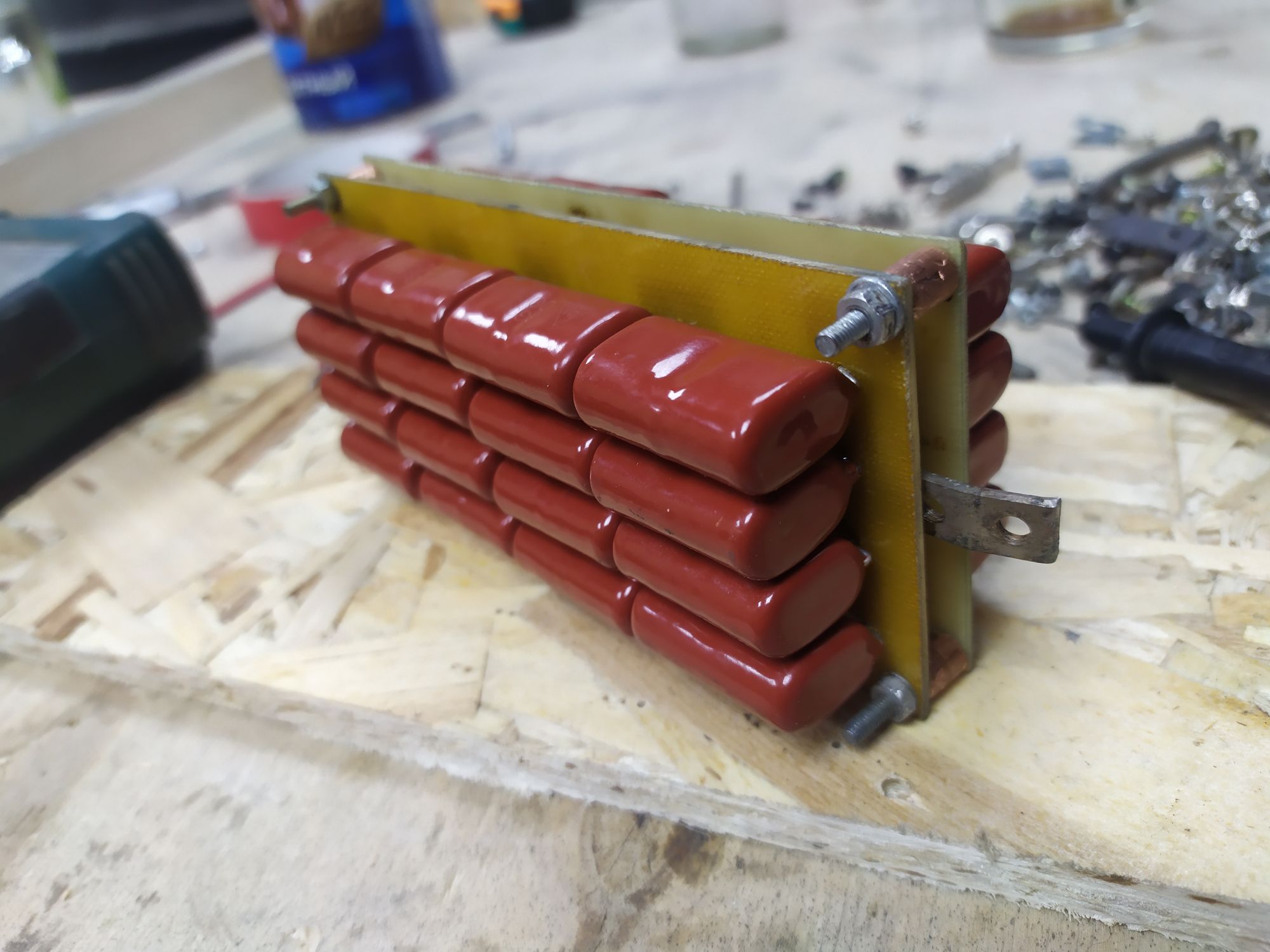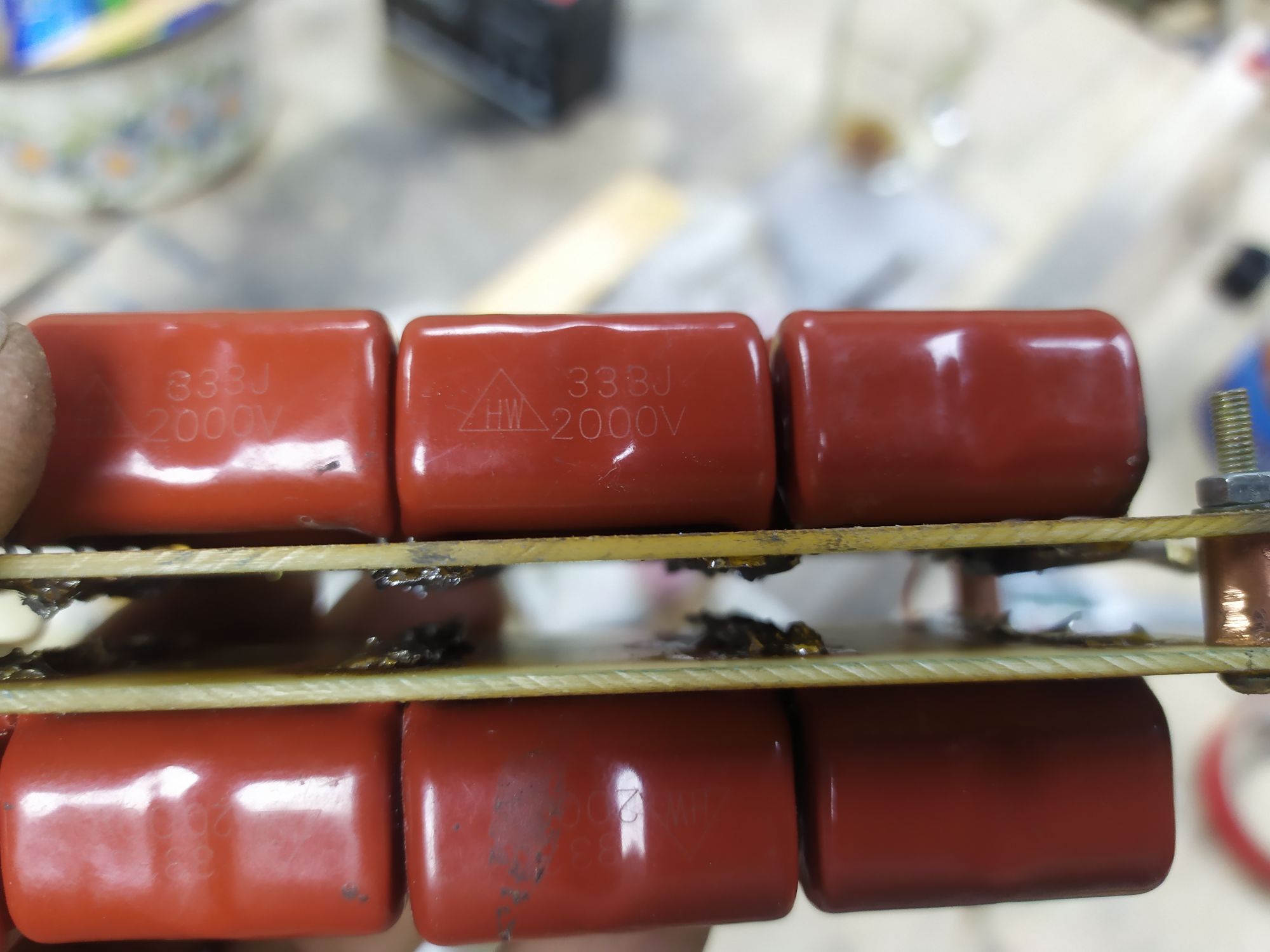 В связи с тем, что с прошлой первичной обмотки были проблемы (пробивало со вторички) , я решился таки переделать ее. Произвел расчет, уж не знаю на сколько правильно, вот: ну и конечно хотелось узнать на какой стример расчитывать можно с полумостом: и с мостом: устраивает! Тогда лепим, что насчитали! Для первички взял провод кг-1*10мм2. В сравнении с трубкой 6мм это просто кайф его укладывать. и вот так вышло как видно я добавил страйкринг! Состряпал ммс из полипропиленовых капов 2000в 33нф. Капы конечно ноунэйм, но вроде не греются, а значит esr как надо!