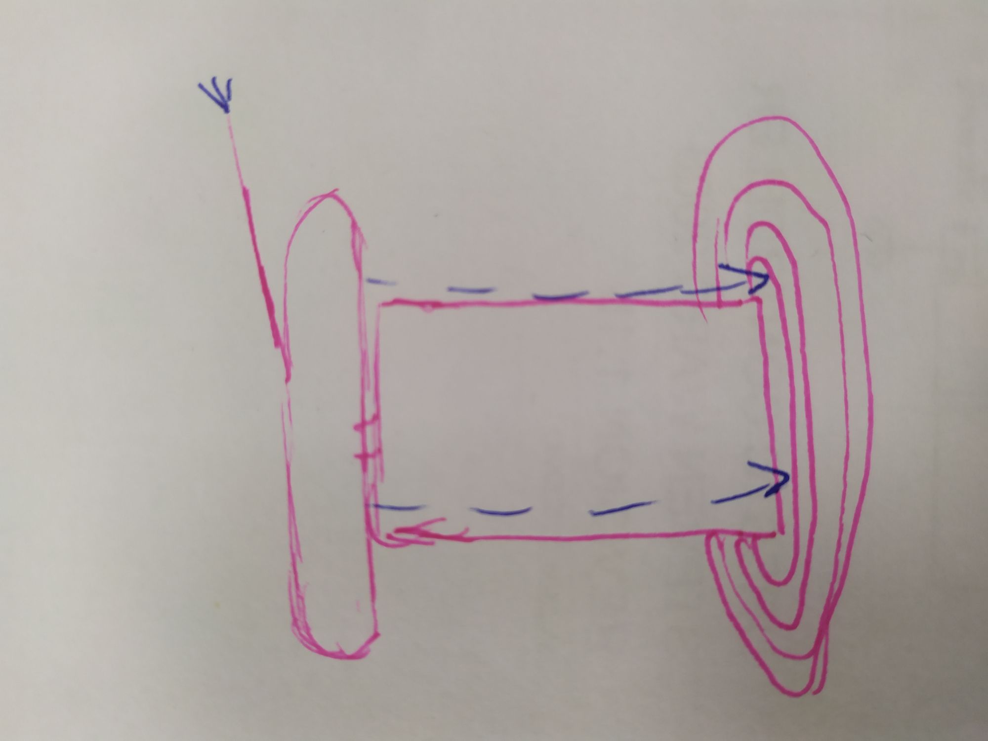 проблема такая: питаю от трансформаторов. При 120в все ровно, при 180 начинают проскакивать искры от внутренней части Тора по поверхности вторички и в первичку, что приводит к мелкому стримеру и смерти ключей. Я постарался изобразить происходящее. Синим обозначены эти самые разряды