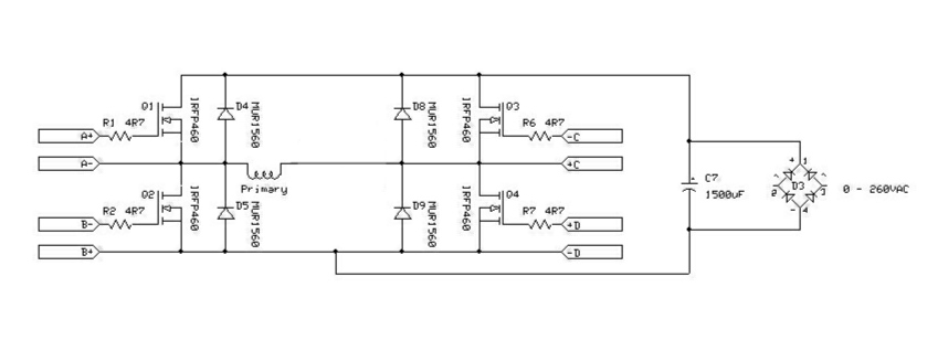 Для SSTC на мосте, принципиально, как здесь только оставляете свои резисторы и диоды на затворах и шунтирующие транзисторы диоды.