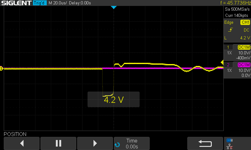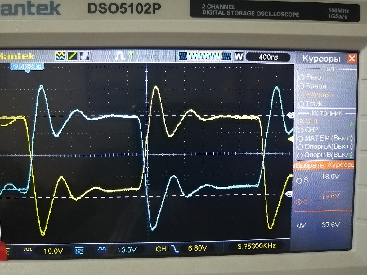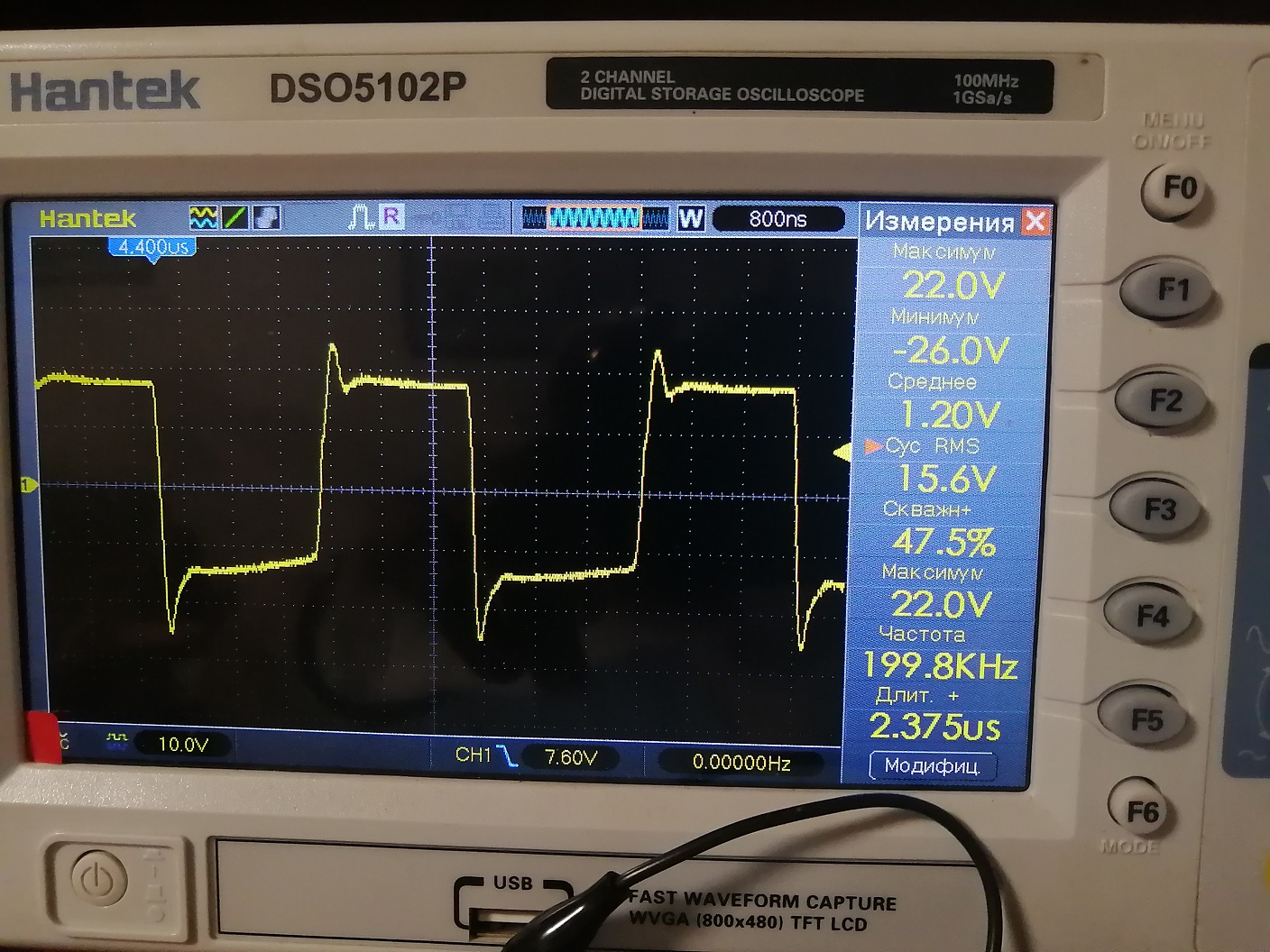 Отключение затвора второго транзистора уменьшает нижний вылет с 26 до 24в.