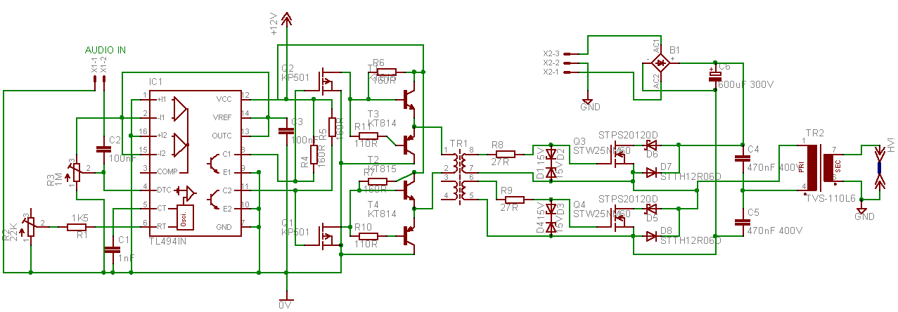 BSVi писал(а):Боюсь, схема не правильная. С2 зарядится и на этом все закончится. Ну и питать это лучше через ЛАТР с трансформатором.