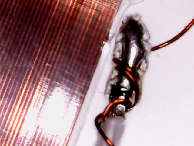 5) в местах припайки белого провода к ПЭТВ дефектов нет