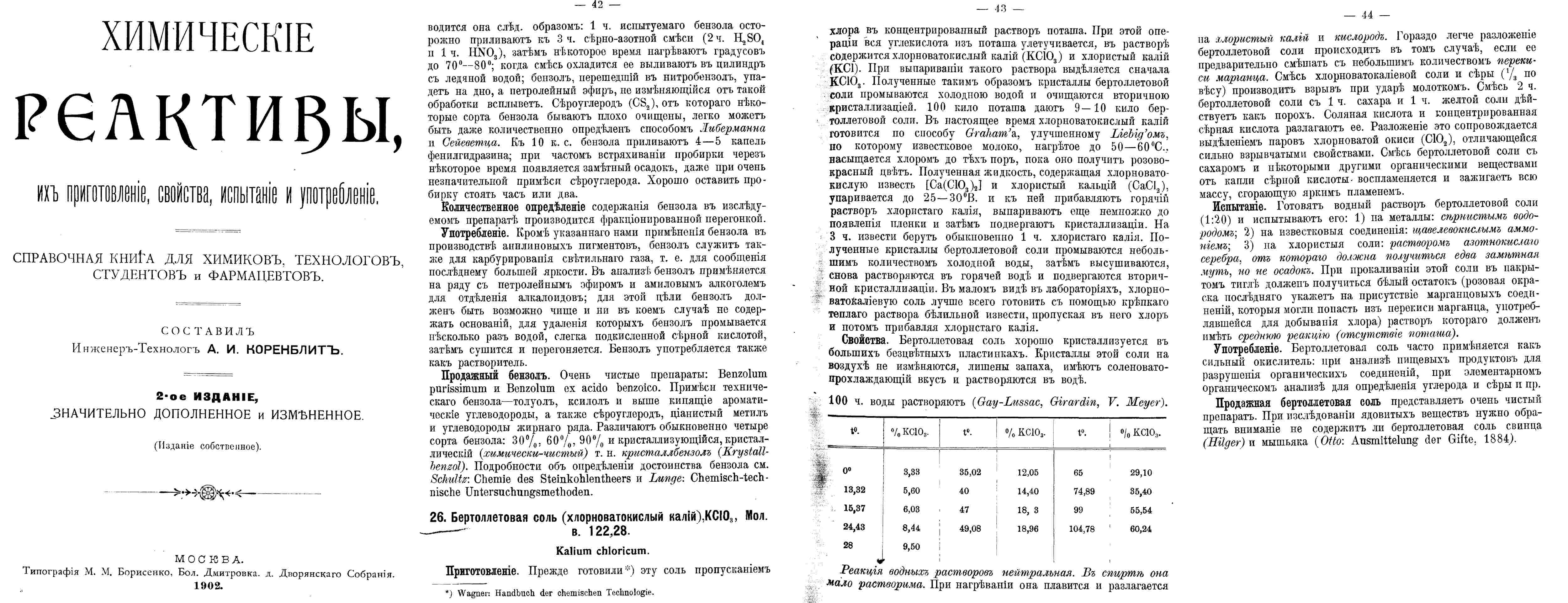 В лаборатории былого времени — полезнейший реактив аналитической химии, окислитель, компонент большого числа неорг. синтезов.