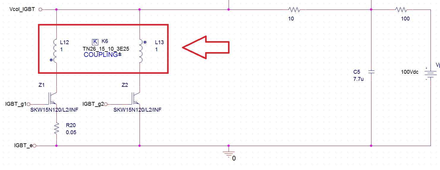 Ниже скину часть схемы симулятора, где резистором делаю дисбаланс токов в IGBT.