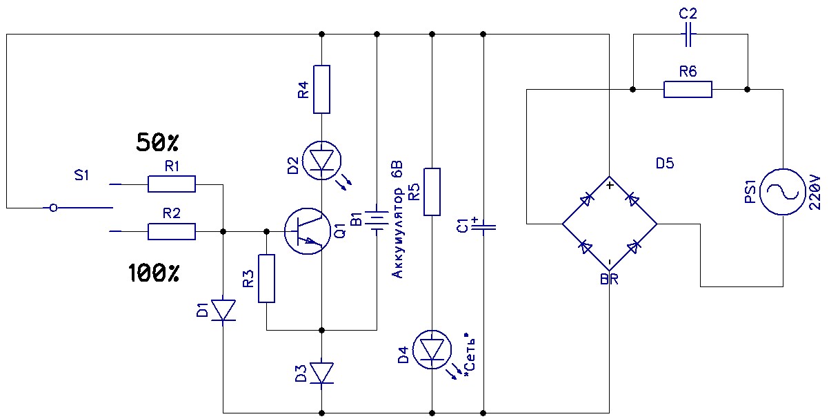 Но по памяти я попытался восстановить схему. Мне ещё запомнилось то, что аккумулятор был подключен через диод со стороны минусовой шины.
