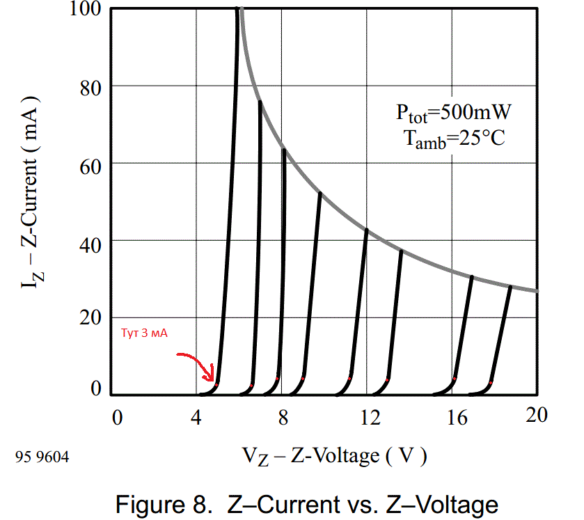 Як мене определити минимальный ток стабилизации стабилитрона из документации? К примеру, datasheet. Куда смотреть, чтобы понять?