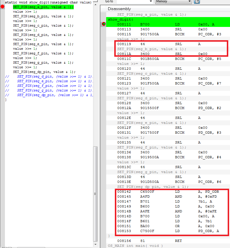 P.S. Уже перепробовал кучу разных, полностью равнозначных с точки зрения С, вариантов реализации этого куска кода.