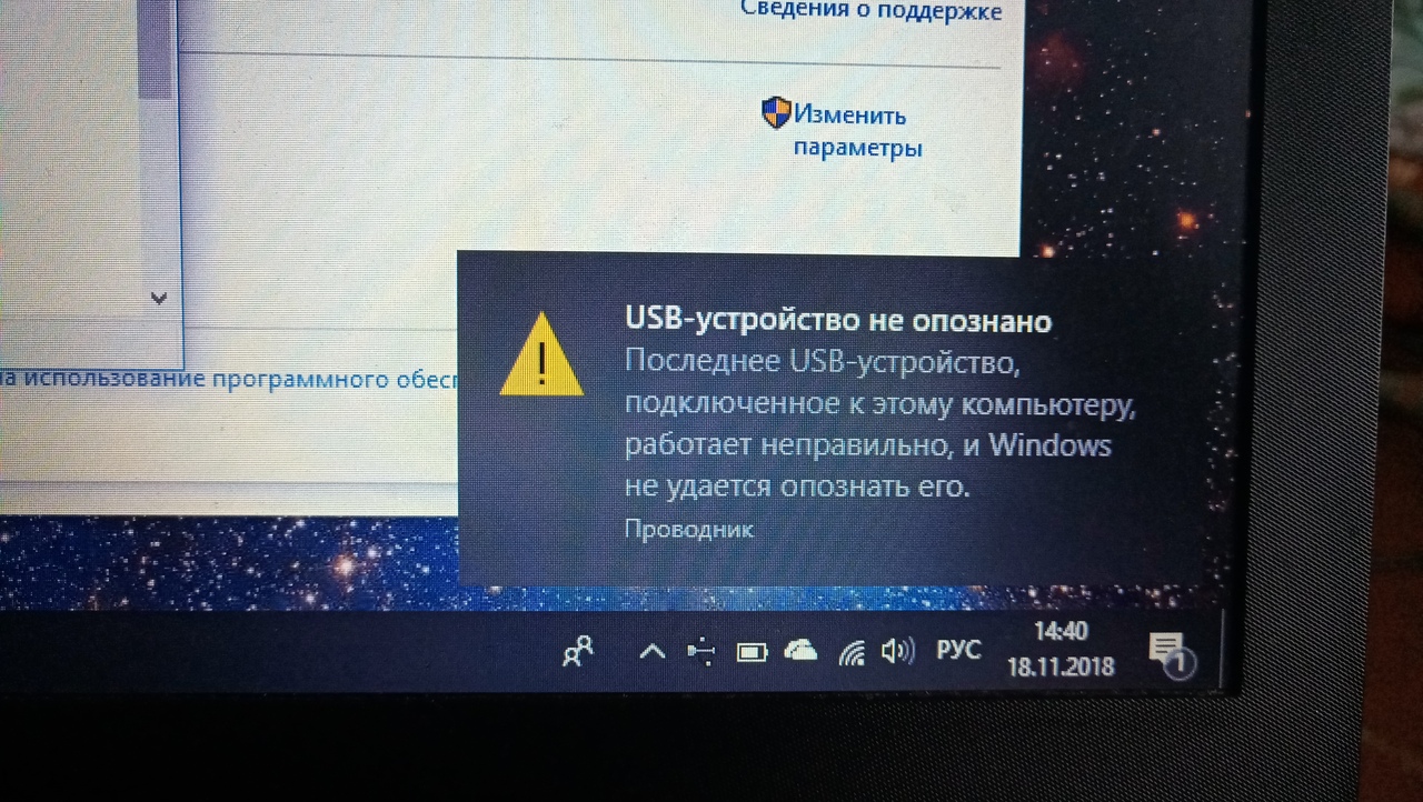 Ошибка, которую выдает винда забыл написать: "Сбой запроса дескриптора устройства".