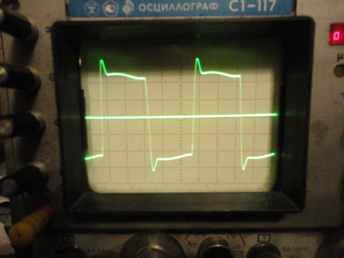 Вот входной сигнал с драйвера на первой обмотке (развёртка 10мкс, 1В/дел):