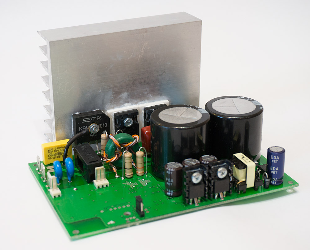 5. Добавлен блокирующий кап последовательно с первичкой. У нас был довольно старнный глюк с последующим фонтаном электролита из одного из 200В капов. Вероятно это было из-за ШИМ, который возникал при работе аналогового корректора ОС — через первичку один из капов заряжался более чем на 200В. Хоть аналогового корректора уже нет — почему не решить проблему, тем более 0.47 мкФ капа оказалось более чем достаточно;