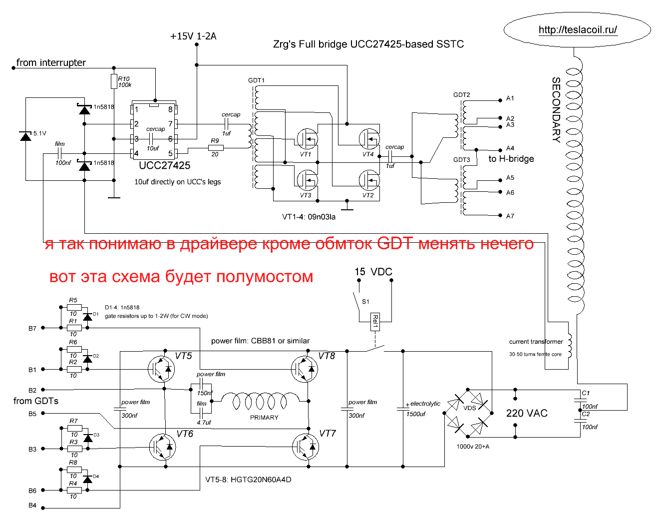 Собственно что я хочу - я хочу собрать теслу простую и качественную, живучую в тоже время достаточно мощную, дравйвер я хочу оставить таким же как и на том сайте который я приводил, вопрос в том можно ли этот драйвер использовать вот к такой силовой части, возможно она не доведена до ума - это с форума 4HV.