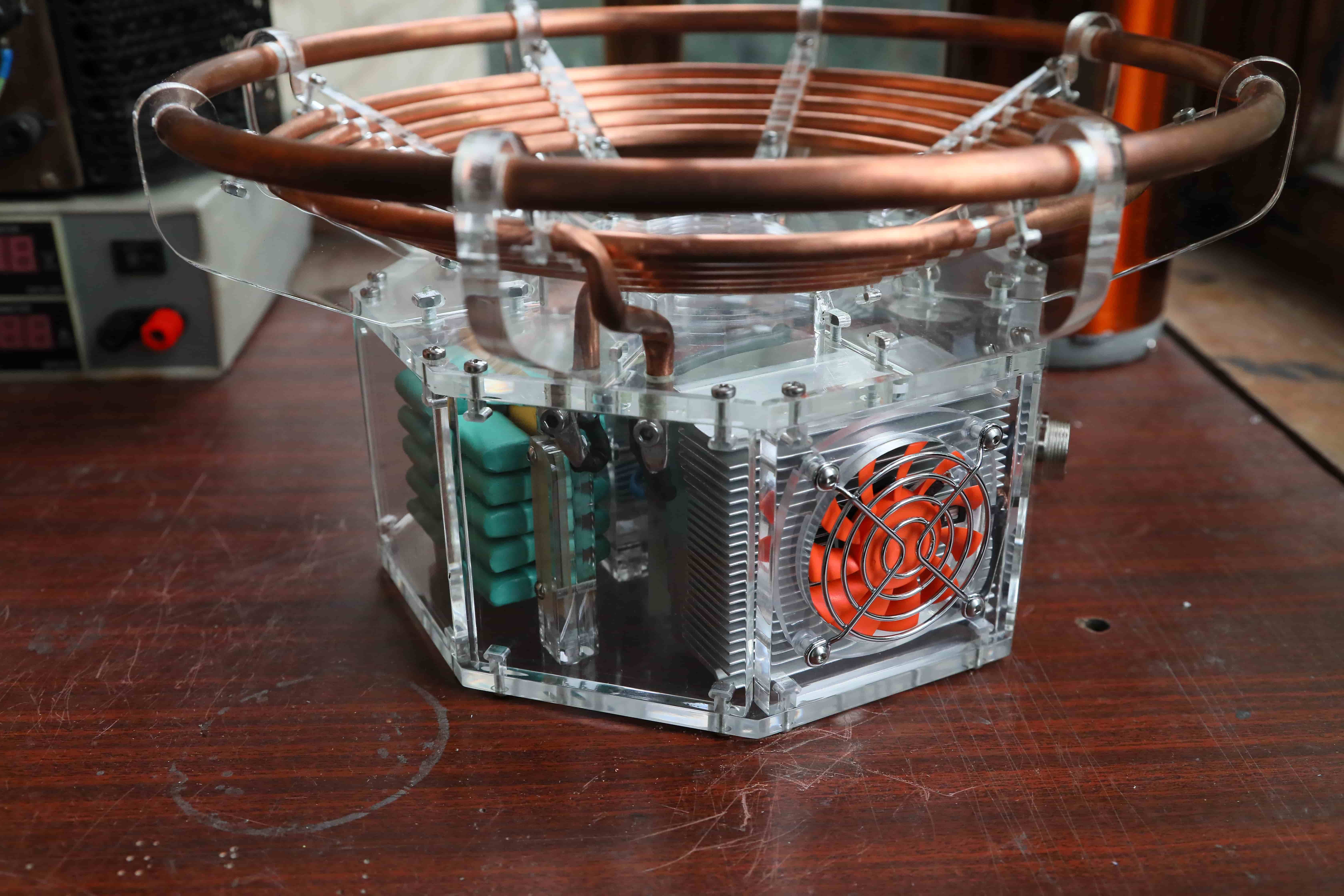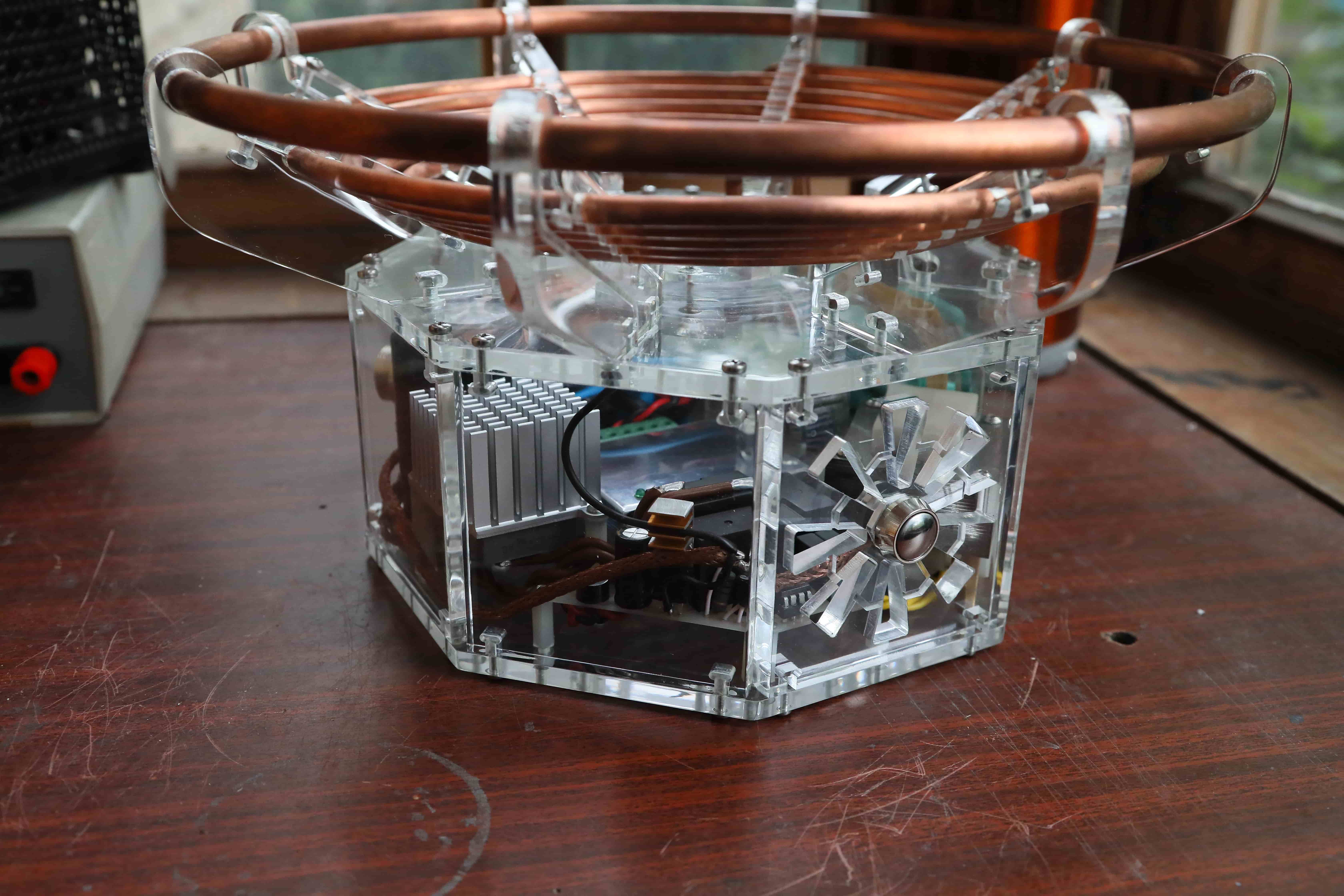 Представляю вторую версию моей дрки, которую я начал еще в 2013 году, но доделал только сейчас, имея под рукой мелкий фрезер, которым сделал большую часть всех деталей (корпус, платы и все остальное, что можно было на нем сделать) Поменял в итоге драйвер, да и вообще переделал почти все по новой. Первая версия была на основе этой http://bsvi.ru/moya-drsstc/ Работала нормально, но периодически вылетали ключи, как выяснилось в основном из-за пробоя в GDT, что убивало уццшки (понадеялся на мгтф но не учел, что изоляция у него достаточно мягкая) Плюс прерыватель оттуда же i1. Как это работало https://www.youtube.com/watch?v=TS-4WzBZCLw