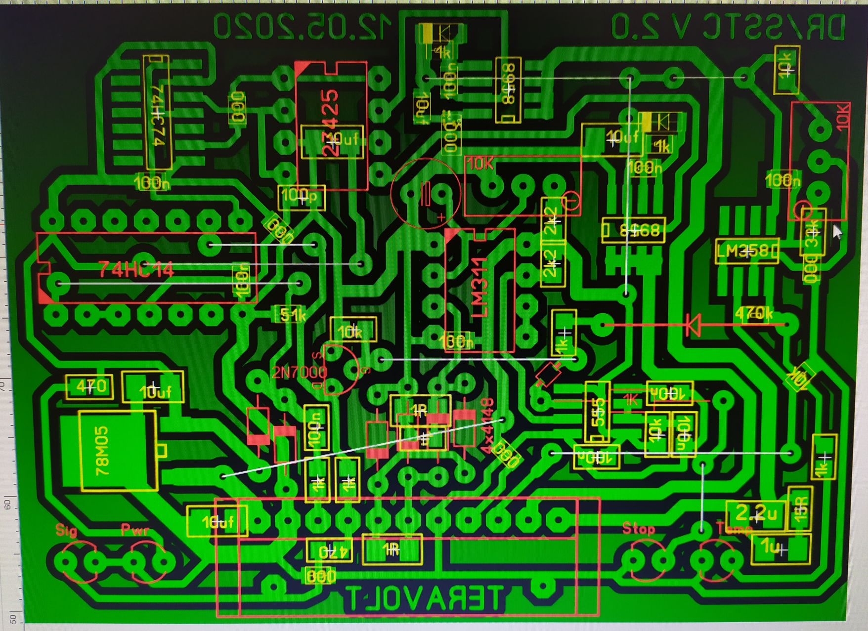 Кстати я понял зачем был нужен r16 на 20к и соответственно установил его. На плате косякнул, не отзеркалил стабилизатор, посему стоит он вверх ногами. Небольшой обзорчик тут https://youtu.be/487RSknyOQM . Как видно защиты работают, но ОЦД... Короче говоря прицепить я силовую на тех же RJH60f7 питал от трансов, общая мощность не более 250вт! ОцД "настроил" так: подключил питания силовой от 13в ас, все заработало. При поднесении отвертки к тору видимо поднимается ток и подмаргивает светодиод, при этом будто падает скважность( разряд прям бледнеет), чуть крутанул подстроичник и все гуд, реакции нет на отвертку. Поднял питание до 36в ас все так же, выставил опять подстроечник, снял разрядник с Тора иии оцД сработал, все гуд, думаю ну ок. Подаю 220 от транса на 250вт. Не более 1 ампера! Стример вылез как был тогда от сети, даже может больше... При попытке словить стример отверткой оцД не сработал и силовая ушла в мусор. Как я мог убить ключи током 1ампер? Силовая обаязана капитально, супрессоры пленки и тд. Что могло произойти не пойму...